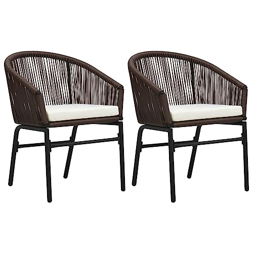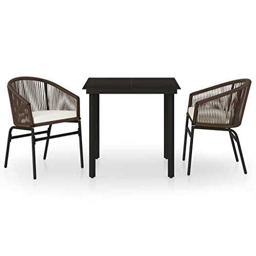 vidaXL 3-Piece Outdoor Patio Dining Set with PVC Rattan Chairs, Glass Tabletop and Comfortable Cushions - Brown