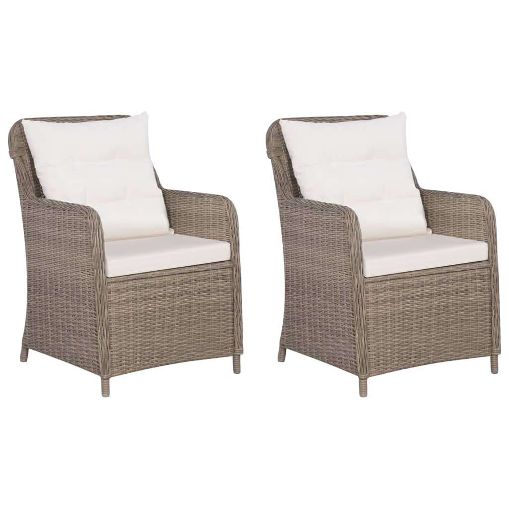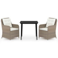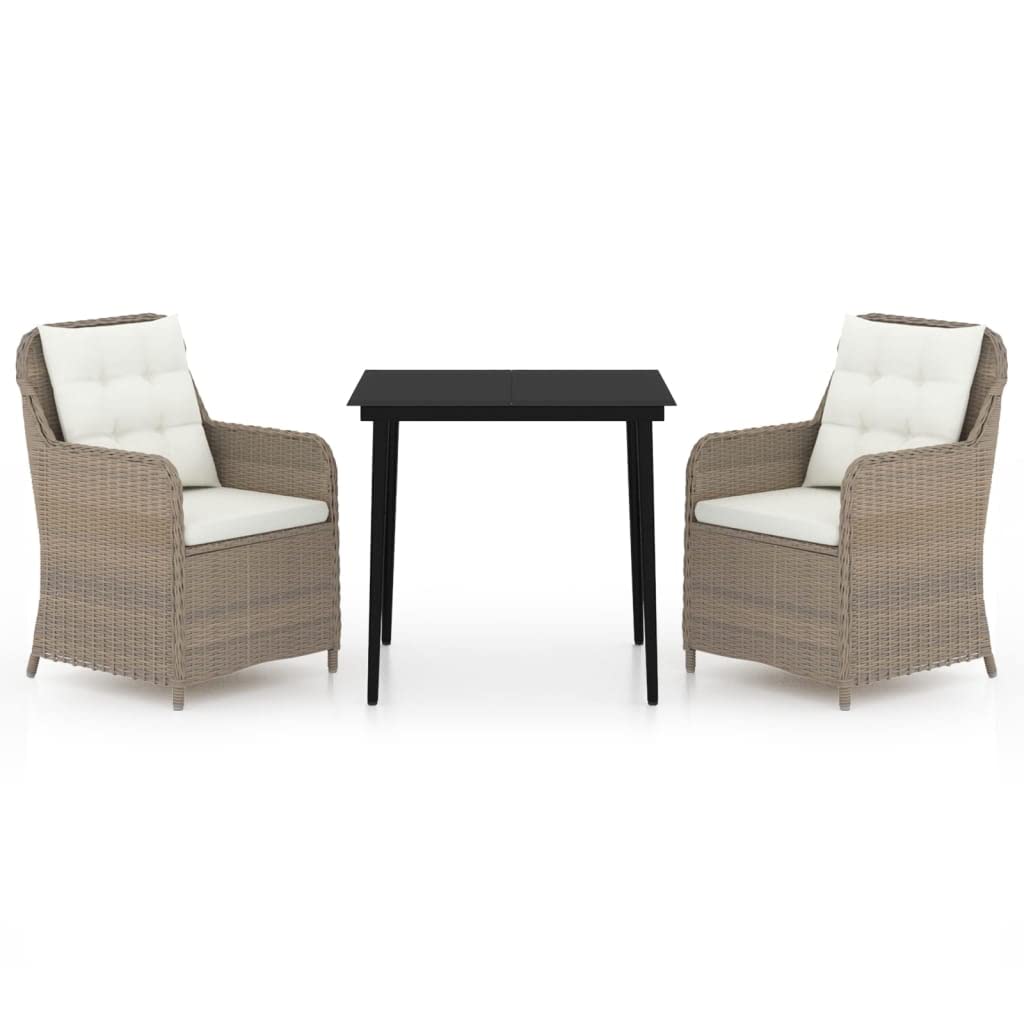 vidaXL 3-Piece Patio Dining Set - Outdoor Brown PE Rattan Chairs with Cream White Cushions and Glass-top Dining Table