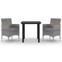 vidaXL 3-Piece Patio Dining Set - Waterproof PE Rattan Chairs with Cushions, Sturdy Steel Frame and Glass Table - Gray and Black Outdoor Furniture Set