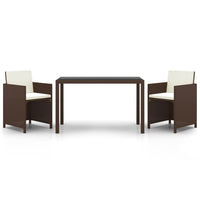 vidaXL 3-Piece Poly Rattan Patio Dining Set - Brown/Beige, Weather-Resistant Outdoor/Garden Furniture with Tempered Glass Tabletop and Cushions