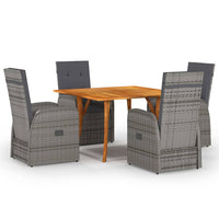 vidaXL 5-Piece Modern Patio Dining Set in Gray - Solid Acacia Wood Table and PE Rattan Chairs with Reclining Backrest and Thick Cushions