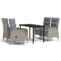 vidaXL 5 Piece Outdoor Patio Dining Set with Cushions – Versatile PE Rattan Chairs & Glass Tabletop – in Elegant Gray and Black – Sturdily Constructed with Powder-Coated Steel Frames