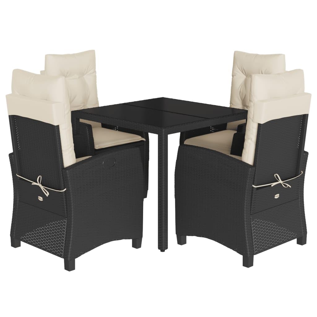 vidaXL 5 Piece Patio Dining Set - Adjustable Recliner Chairs with Cushions - Black Poly Rattan Outdoor Furniture for Garden, Backyard, Patio - Tempered Glass Table