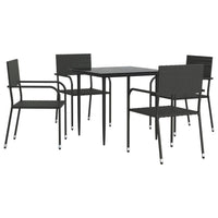 vidaXL 5 Piece Patio Dining Set - Black Poly Rattan & Steel Furniture for Garden & Patio - Square Table, Stackable Chairs