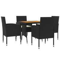 vidaXL 5 Piece Patio Dining Set, Black Poly Rattan with Steel Frame, Cream White Cushions, Ergonomic Garden Chairs and Acacia Wood Table Top for Outdoor Use