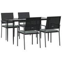 vidaXL 5-Piece Patio Dining Set, Outdoor Furniture with Comfortable Cushions and Tempered Glass Tabletop, PE Rattan and Steel Materials, Black and Light Gray Tones