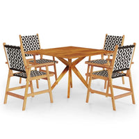 vidaXL 5-Piece Patio Dining Set, Solid Acacia Wood Outdoor Furniture, Square Table, Stylish Chairs with Lattice Pattern, Easy Assembly, Sturdy and Durable for Garden/Patio Use