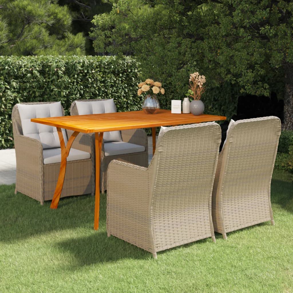 vidaXL 5-Piece Patio Dining Set with Acacia Wood Table and PE Rattan Chairs - Weather-Resistant Outdoor Furniture with Padded Cushions - Brown/Cream