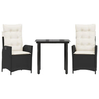 vidaXL 5 Piece Patio Dining Set with Cushions - Adjustable Reclining Chairs, Durable PE Rattan, Black with Tempered Glass Tabletop for Outdoor/Garden/Backyard/Patio