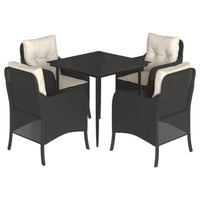 vidaXL 5 Piece Patio Dining Set with Cushions - Black Poly Rattan Garden Outdoor Table & Chairs, Weather-Resistant PE Rattan, Tempered Glass Top, Removable Covers