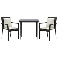 vidaXL 5-Piece Patio Dining Set with Cushions - Black Poly Rattan, Powder-Coated Steel Frame, Tempered Glass Tabletop, Modular Design, for Garden/Deck