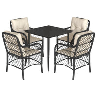 vidaXL - 5 Piece Patio Dining Set with Cushions - Black Poly Rattan, Square Glass Tabletop, Outdoor Furniture for Garden and Backyard, Weather-Resistant
