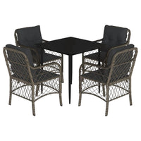 vidaXL 5-Piece Patio Dining Set with Cushions - PE Rattan Outdoor Garden Furniture - Tempered Glass & Steel - Ideal for Backyard, Deck, Gray