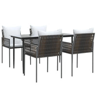 vidaXL 5 Piece Patio Dining Set with Cushions - Weather-Resistant Poly Rattan Material, Tempered Glass Tabletop, Comfortable Seating, Brown