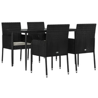 vidaXL 5 Piece Patio Lounge Dining Set - Black PE Rattan, Cream White Cushions, Sturdy Steel Frame, Tempered Glass Tabletop, Rectangular Table