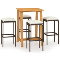 vidaXL 5-Piece Rattan & Acacia Wood Patio Bar Set with Cushions - Durable, Easy to Clean, Comfortable Outdoor Furniture Set - Brown, Cream