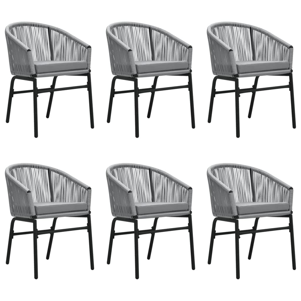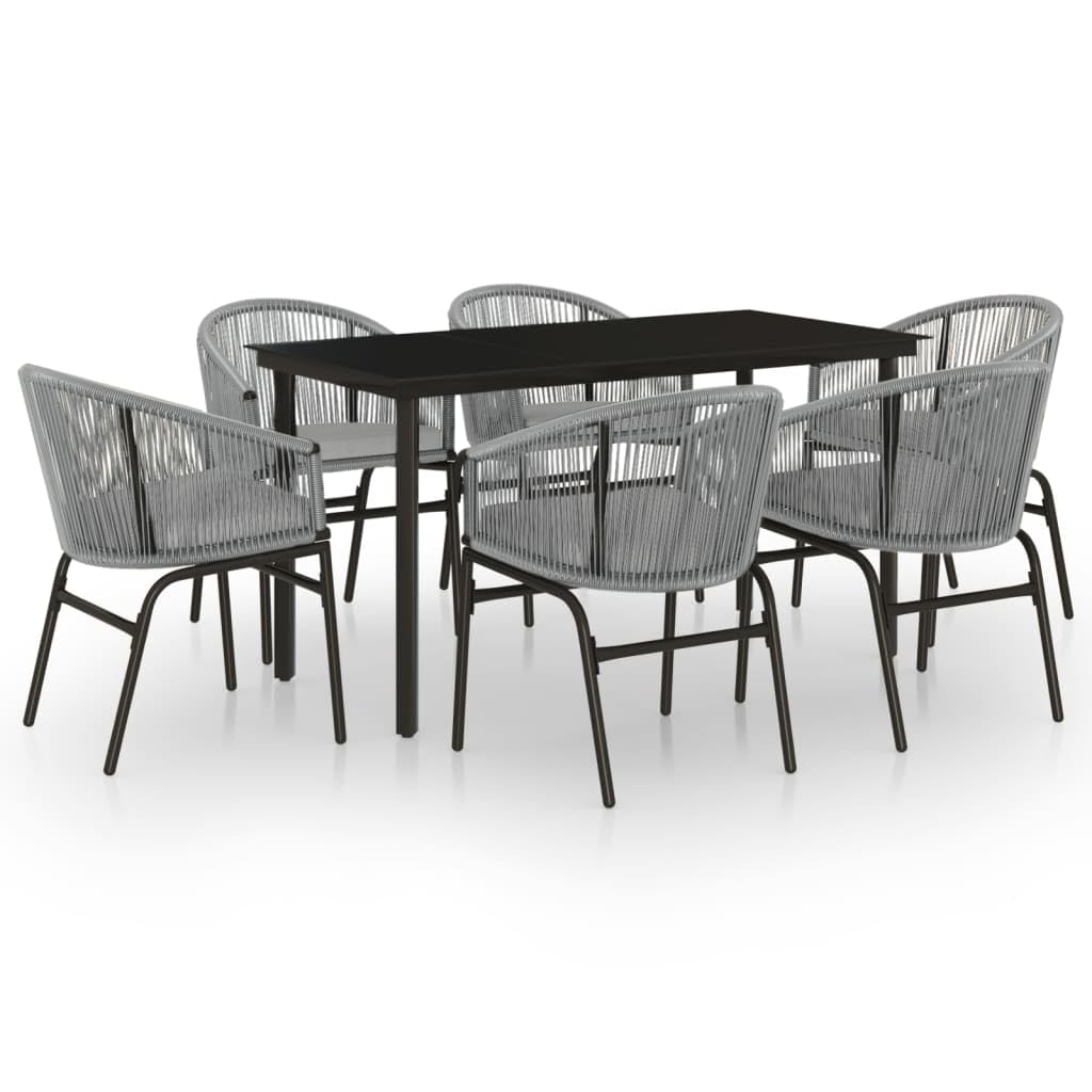 vidaXL 7-Piece Outdoor Dining Set - Steel Frame with Glass Table Top, PVC Rattan Patio Chairs with Cushions, Weather Resistant - Gray