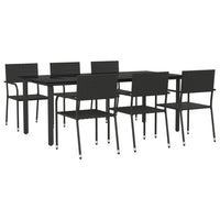 vidaXL 7-Piece Outdoor Patio Dining Set - Black Poly Rattan and Steel Frame, Weather-Resistant -Includes Glass Table and Stackable Chairs for Garden, Porch, Backyard