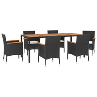 vidaXL 7 Piece Patio Dining Set - Black PE Rattan and Solid Acacia Wood Tabletop - includes Comfortable Cushions and Sturdy Steel Frame, 3187360