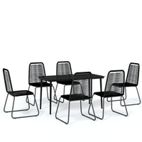 vidaXL 7 Piece Patio Dining Set - Black Powder-Coated Steel Frame with Glass Tabletop and PE Rattan Chairs for Outdoor Dining and Entertainment