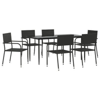 vidaXL 7-Piece Patio Dining Set in Elite Black - Weather-Resistant Poly Rattan and Sturdy Steel Material, Space-Saving Stackable Chairs, Rectangular Table with Tempered Glass Top’
