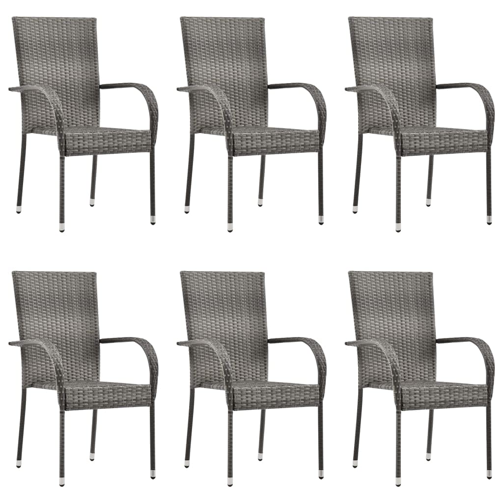 vidaXL 7-Piece Patio Dining Set - Outdoor Furniture with Solid Acacia Wood Table and Poly Rattan Chairs - Ideal for Garden, Backyard, and Patio - Gray