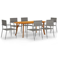 vidaXL 7-Piece Patio Dining Set - Solid Acacia Wood Table, Weather-Resistant PE Rattan Chairs - Modern Outdoor Furniture for Patio, Backyard, Garden - Anthracite