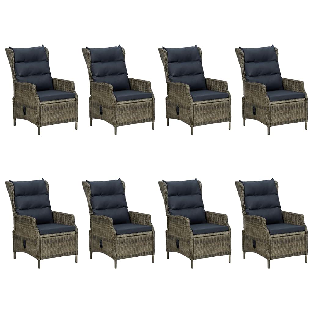 vidaXL 9-Piece Outdoor Patio Dining Set with Cushions - Brown Poly Rattan with Adjustable Backrest and Removable Cushion Covers.