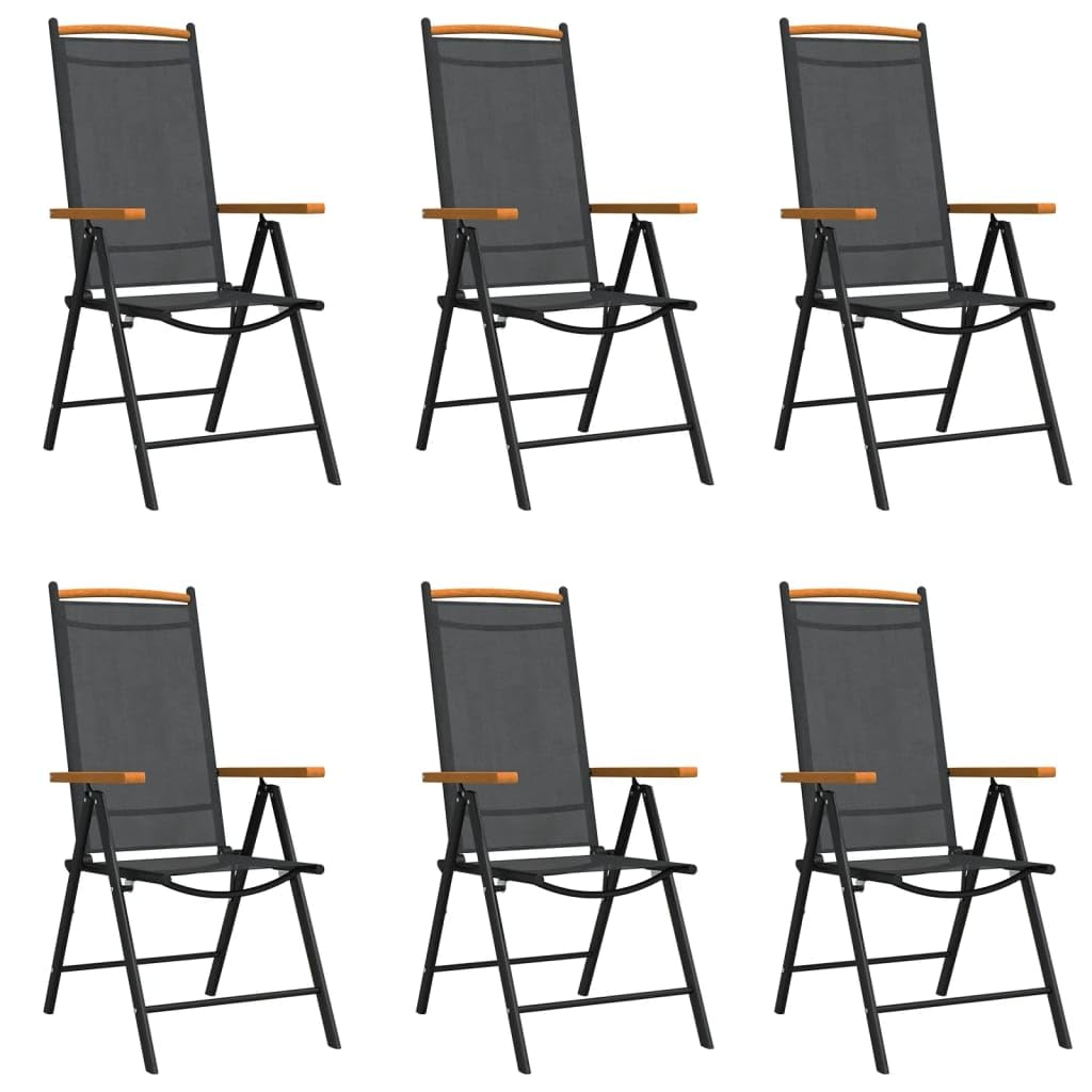 The powder-coated aluminum frame makes the furniture set very sturdy and durable. The garden chairs have soft-to-touch textilene seats and backrests, adjustable in 7 positions, so you can always find the most comfortable seating position. The armrests and top bar add to the chairs' stylish look. The armchairs can be folded to save space when not in use. The table features a WPC tabletop, which is easy to clean and suitable for outdoor use.