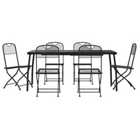 vidaXL Anthracite Metal Mesh Patio Dining Set - 7 Piece Industrial Style Garden Furniture with Foldable Chairs and Spacious Tabletop