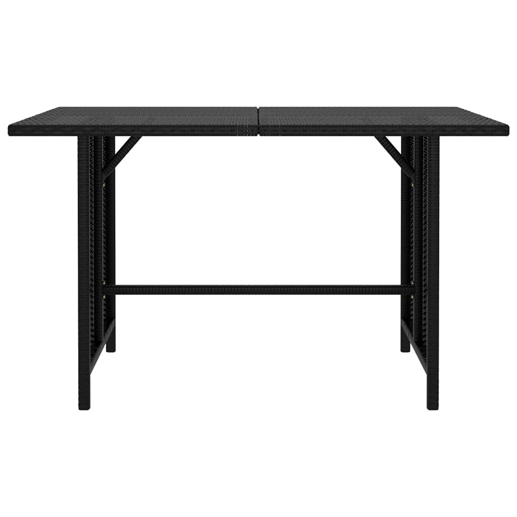 This stylish and practical garden dining table is an excellent addition to your garden and patio. Made from water-resistant PE rattan, the outdoor table is easy to clean and suitable for everyday outdoor use. The powder-coated steel frame gives the table extra stability. Thanks to the lightweight design, the garden table can be easily adjusted. Note: To prolong the life of your garden furniture, we recommend that you clean it regularly and protect it from rain or strong sun rays. Cleaning: use a mild soap solution. Storage: if possible, store in a cool, dry place indoors. If the product is stored outdoors, protect it with a waterproof cover. Wipe and dry the excess water or snow after rain or snow from flat surfaces. Ensure sufficient air circulation to avoid moisture-related damage. Colour: black Material: PE rattan, steel Table dimensions: 110 x 70 x 65 cm (W x D x H). Assembly Required: Yes