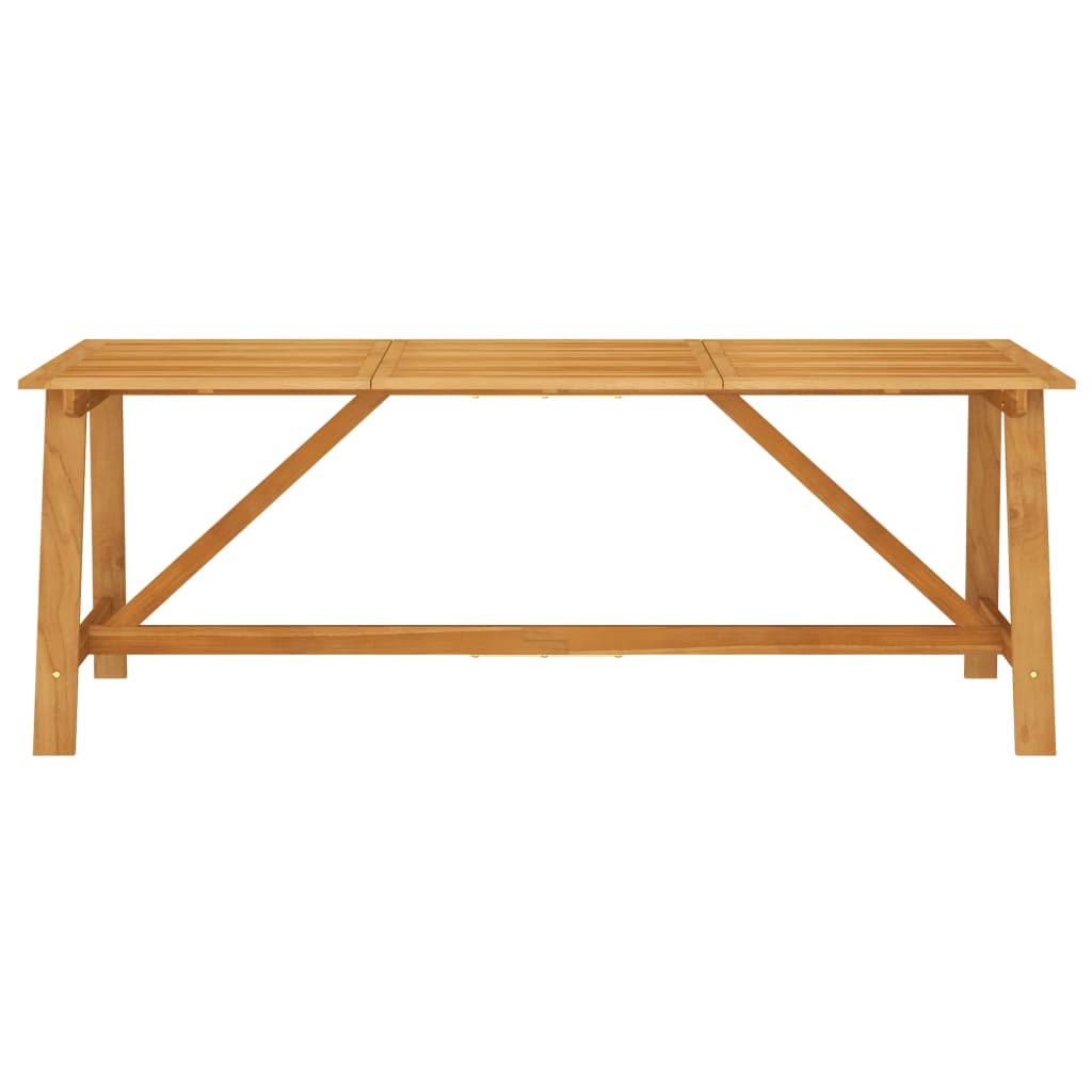 Featuring a simple yet stylish design, this wooden garden dining table makes a great addition to your living space. Made of solid acacia wood with an oil finish, this table is durable, stable, and easy to clean with a damp cloth. Additionally, it is also suitable for indoor and outdoor use. Important note: The colours vary from piece to piece, making each piece unique; the delivery is random.