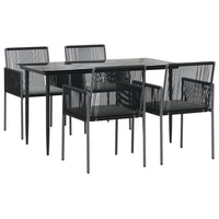 vidaXL Outdoor Dining Set- 5 Pieces Patio Furniture- Black Poly Rattan and Steel Frame, Set Includes 4 Chairs and a Tempered Glass Topped Table with Cushions