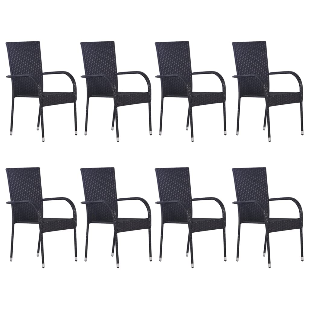 vidaXL Outdoor Dining Set- 9 Piece Patio Furniture Set, Poly Rattan in Black with Solid Acacia Wood Table and Steel Frame, Stackable Chairs