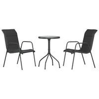 vidaXL Outdoor Patio Dining Set, 3 Piece Set with Black Steel Frame, Weather Resistant Textilene Chairs with Padding and Glass Tabletop, Perfect for Garden, Patio, Deck