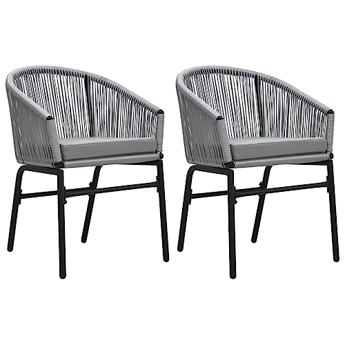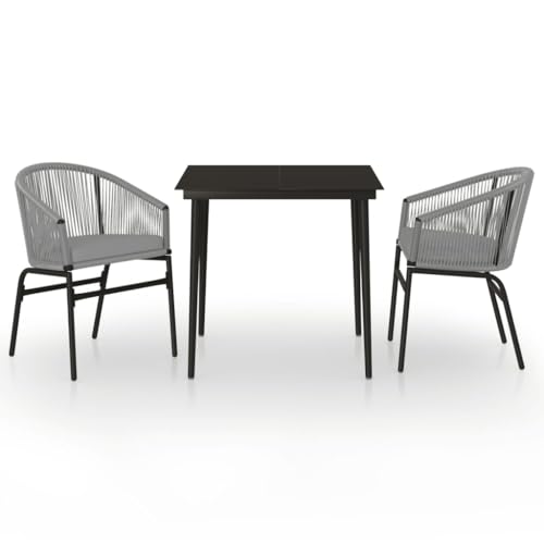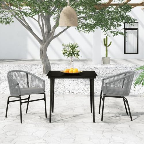 vidaXL Outdoor Patio Dining Set – 5-Piece Square Table and Chair Set with Cushions – Gray PVC Rattan and Black Powder-Coated Steel Construction