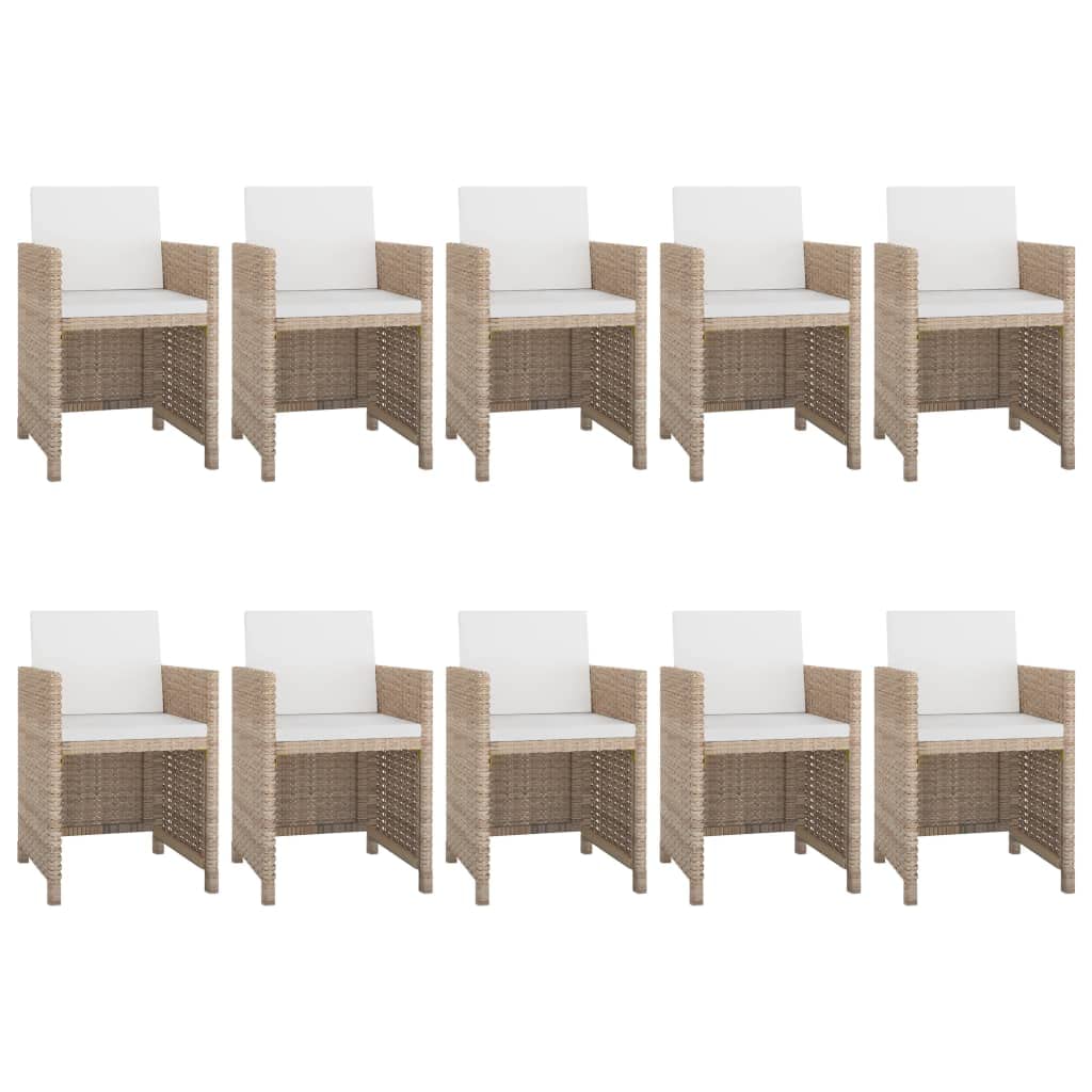 vidaXL Patio Dining Set, 11-Piece Poly Rattan with Cushions, Beige, Weather-Resistant, Suitable for Al Fresco Dining and Garden Relaxation