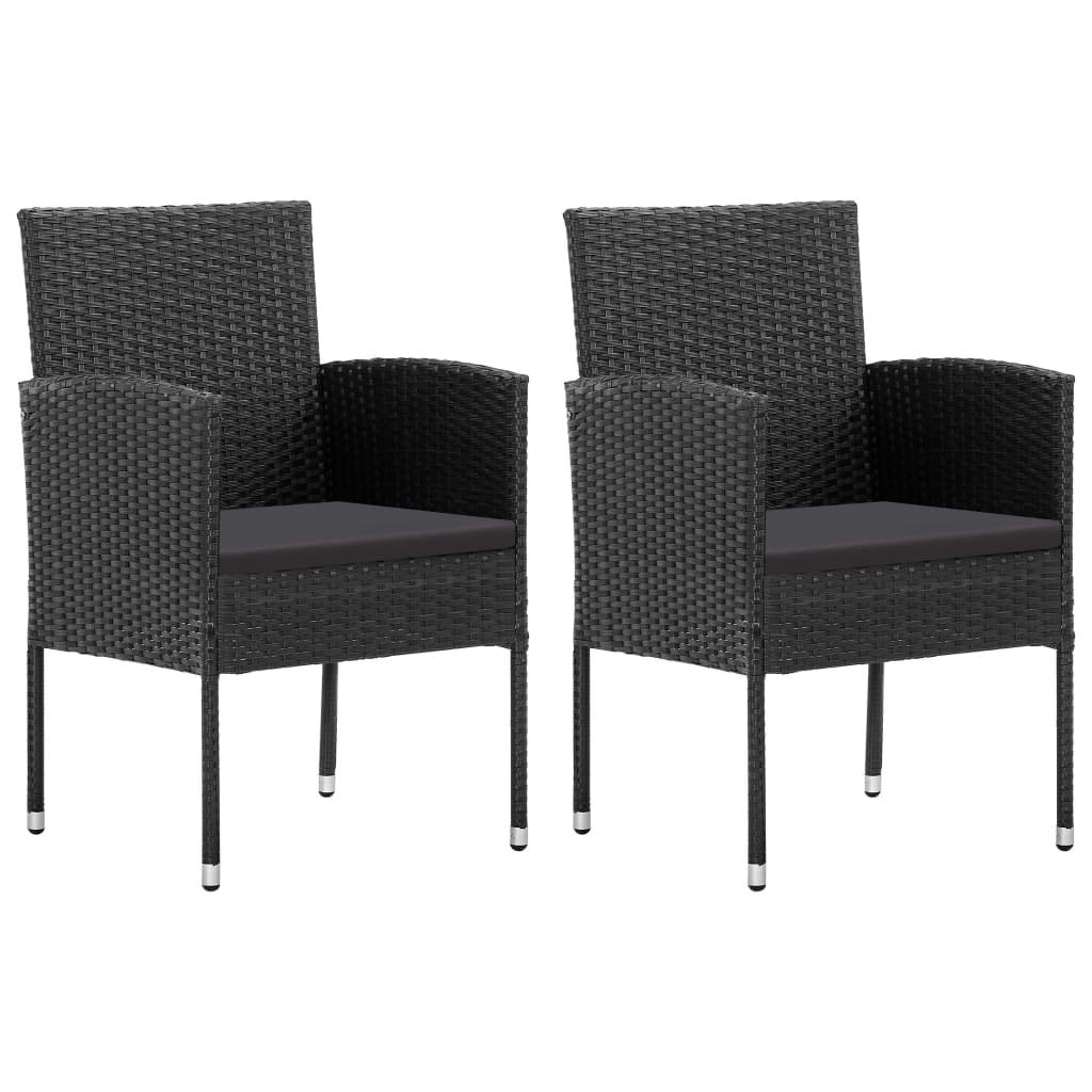 vidaXL Patio Dining Set - 3 Piece - Black - Solid Acacia Wood and PE Rattan Chairs - Outdoor Garden Furniture with Cushions -Farmhouse Style - Easy Assembly