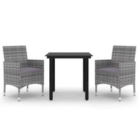 vidaXL Patio Dining Set 3 Piece, Outdoor Dining Set for 2, Table and Chair with Cushions, Dining Chair for Garden Backyard, Poly Rattan and Glass