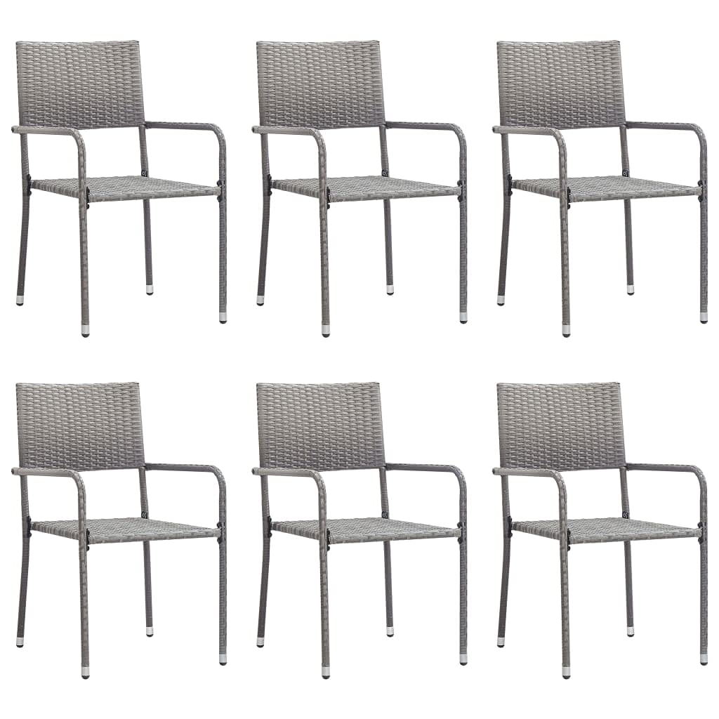 vidaXL Patio Dining Set - 7 Piece Outdoor Dining Furniture Set with Solid Acacia Wood Table and Gray PE Rattan Chairs - Farmhouse Style