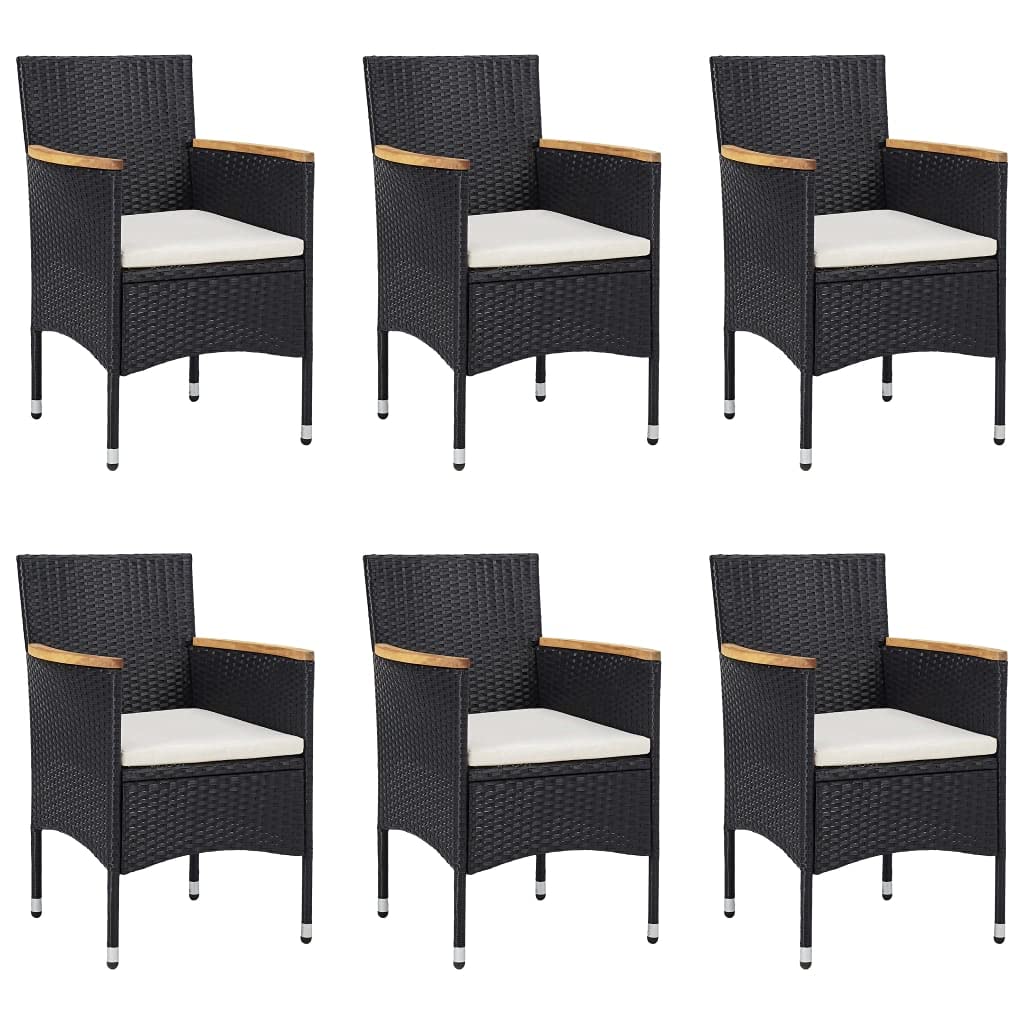vidaXL Patio Dining Set 7 Piece Poly Rattan and Acacia Wood - Black, Outdoor Furniture - Includes Table and Six Chairs with Cushions