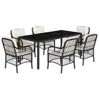 vidaXL Patio Dining Set with Cushions Table and Chairs 7 Piece Black Poly Rattan
