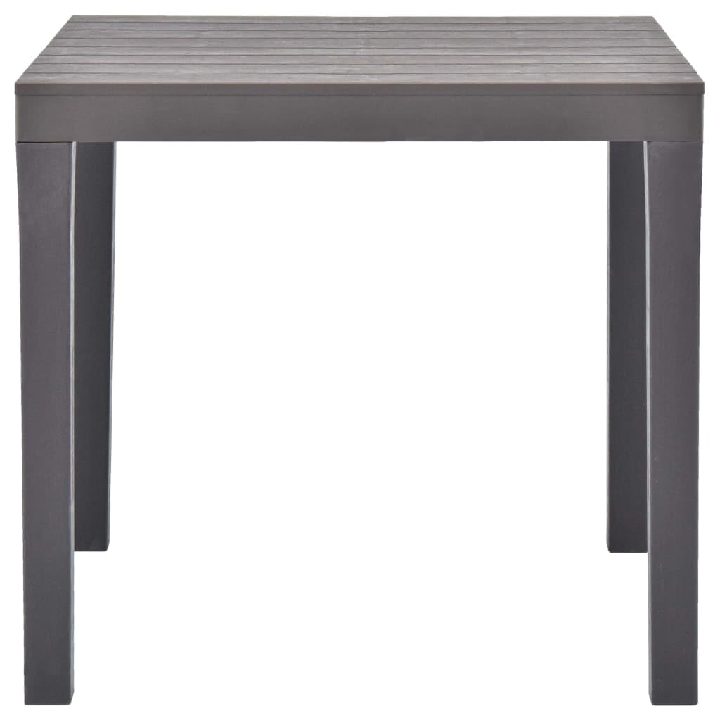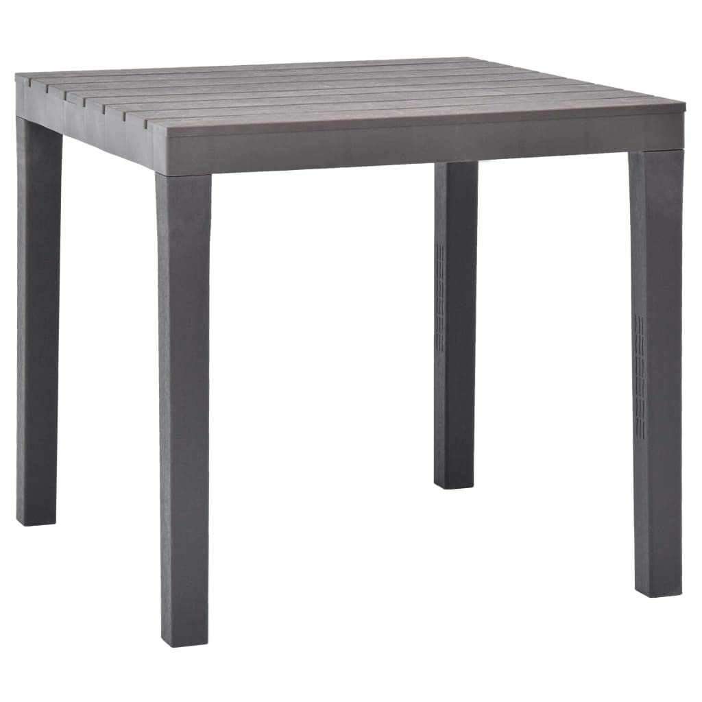 Camping/Garden Table 78x78 cmThis garden table,, Made of durable Mokkafarbenen Solid Plastic that is suitable for a range of uses and excellently suitable for terrace, winter garden, balcony or modern living room.The square plastic table is decorated with an elegant wooden look. Thanks to the robust stacking system of the table is stable when set up in no time.Details Garden Table- Decorative Wood Effect- Weather Resistant Ändigs Material- Max. Load: 65 kg- Size (W x D x H): about 78X78X72 CM- Material: Plastic- Colour: Mocha- Weight (each): approx. 8 kg