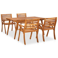 Create a compelling and cohesive aesthetic in your outdoor space with this wooden patio dining set The outdoor table and chairs are made of solid acacia wood, making them sturdy and stable. The oil-finished surface also makes the dinner table and chairs easy to clean with a damp cloth. Additionally, the curved legs contribute to the dining tables stylish design. The armrests add more comfort while sitting.