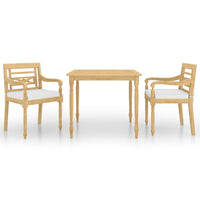 vidaXL Solid Teak Wood Patio Dining Set 3 Piece with Cushions Outdoor Garden Terrace Kitchen Dining Room Wooden Seating Seat Table and Chair Furniture