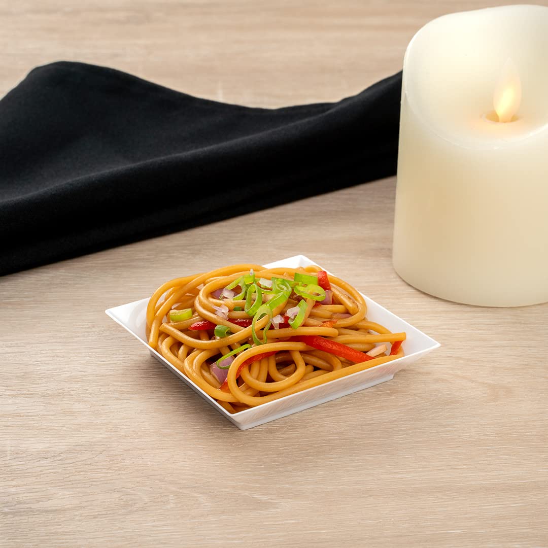 Create Beautifully Plated Servings Of Small Dishes Using Our Square White Plastic Small Modern Plates. Made With Premium Plastic, These Square Plates Are Recyclable For A Speedy And Nature-Friendly Cleanup After Large Catering Events Or Busy Banquet Celebrations. Designed With A Shiny White Finish, These Sleek Small Plastic Plates Bring A Stylish Look To Appetizers And Desserts. These White Plastic Plates Feature A Squared Design And Raised Edges For An Elegant And Mess-Free Way To Serve Dishes. To Maintain Its Appearance And Stop Leaks, These Sturdy Square Plates Are Crack-Resistant And Leak-Resistant. Perfect For Space-Saving Storage, These Small Plastic Plates Are Conveniently Stackable. Measuring 3.9 Inches In Length By 3.9 Inches In Width, These White Plastic Plates Are Sold In A 20 Count Box.
