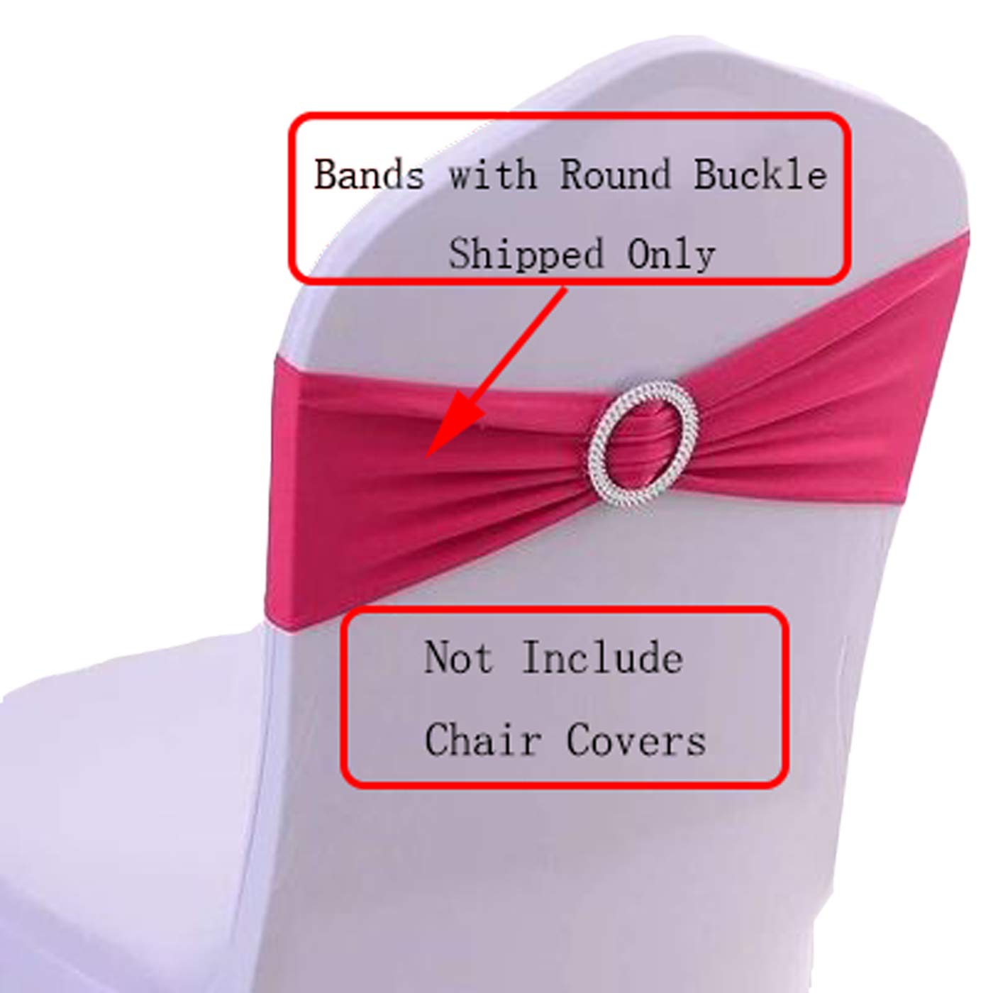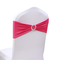 50Pcs Spandex Chair Sashes Bows Elastic Chair Bands With Buckle Slider Sashes Bows For Wedding Decorations (50Pcs, Fushia)