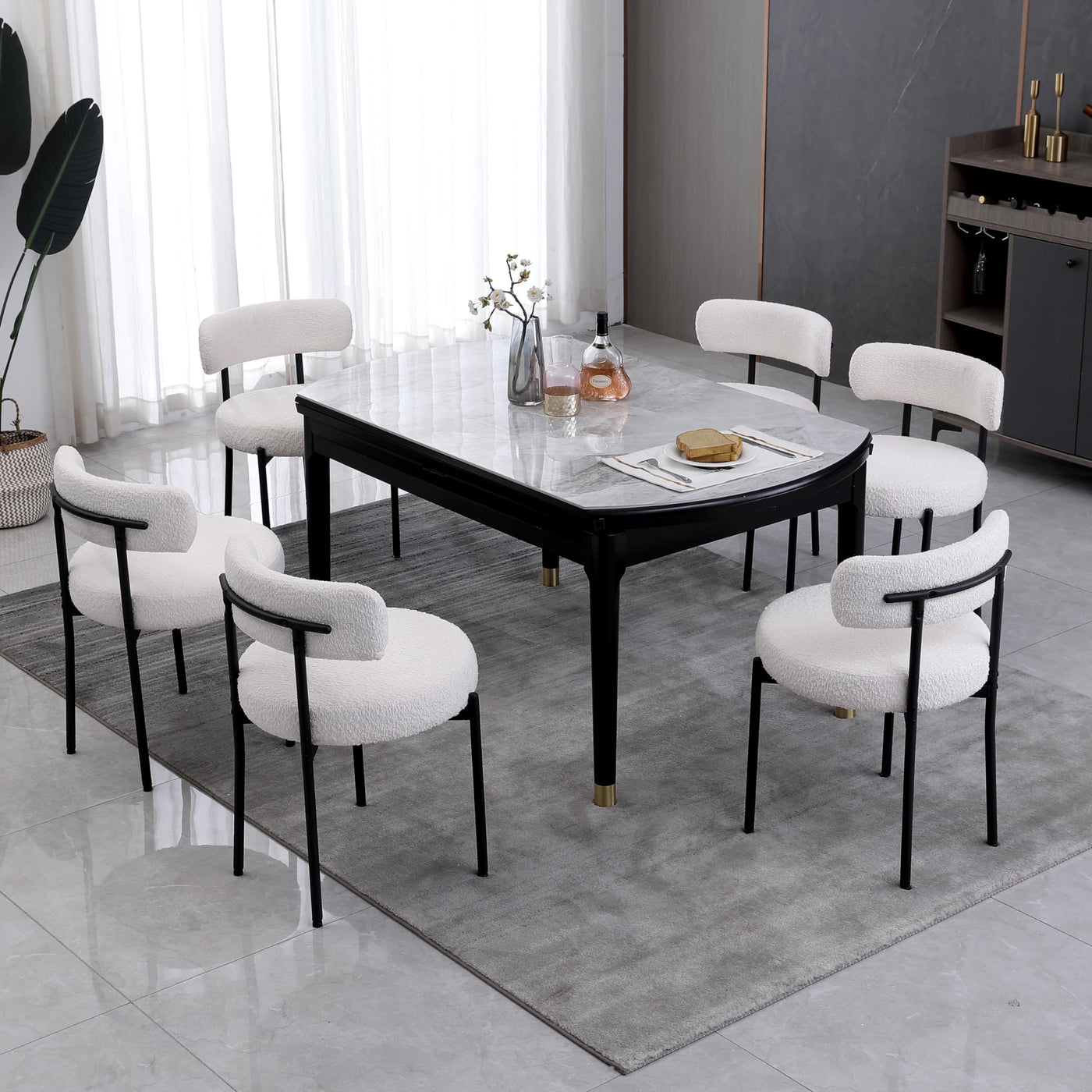 Aisall White Dining Chairs Set Of 6 Round Upholstered Boucle Dining Room Chairs Mid-Century Modern Kitchen Chairs Curved Backres