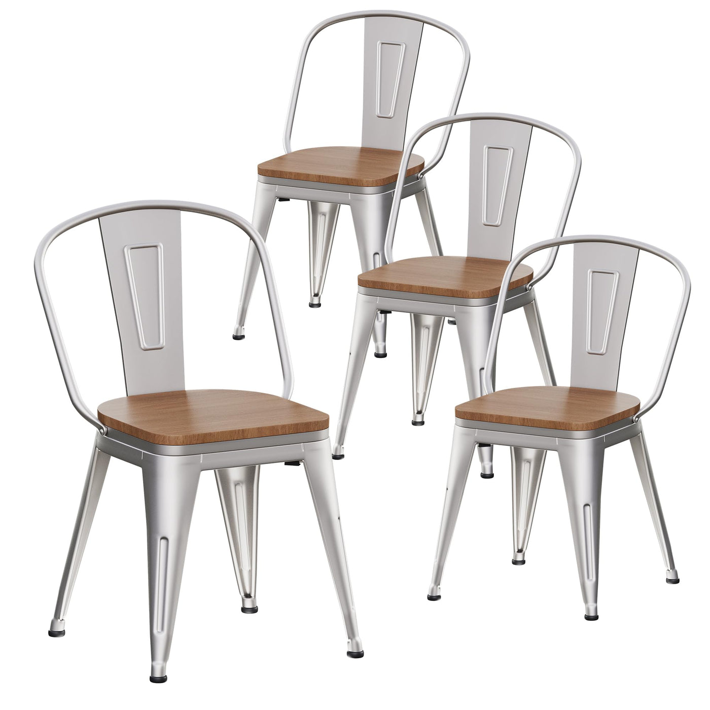 Alunaune 18Inch Metal Dining Chair Set Of 4 High Back Classic Chic Iron Farmhouse Chairs Industrial Stackable Coffee Stools Bist