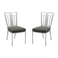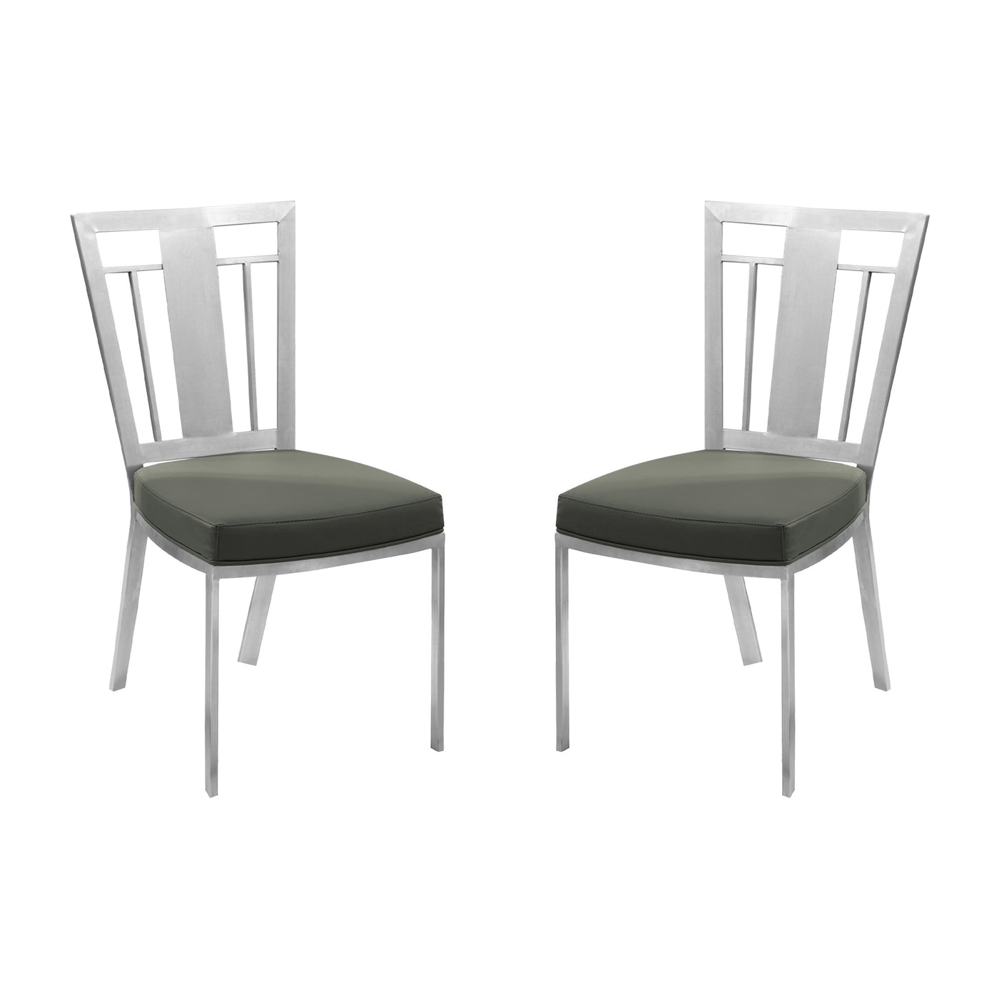 Armen Living Cleo Contemporary Dining Chair In Gray and Stainless Steel - Set of 2